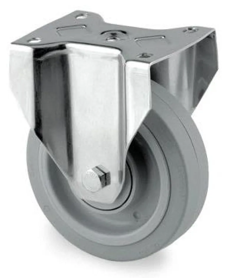 Teollisuuspyörässä on harmaa elastinen kumipinta ja tarkkuuskuula- tai rullalaakerointi, joka takaa tasaisen ja kevyen ajon. Sinkkipinnoitettu teräspidike.