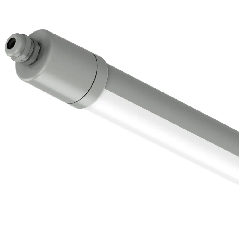 Runko on valmistettu harmaasta polykarbonaatista, jossa on UV-suoja, ja mattapintainen suojus takaa tasaisen ja miellyttävän valonjaon. Valaisin on täysin tiivis ja ammoniakkia kestävä, mikä tekee siitä sopivan myös esim. maatalousympäristöihin.