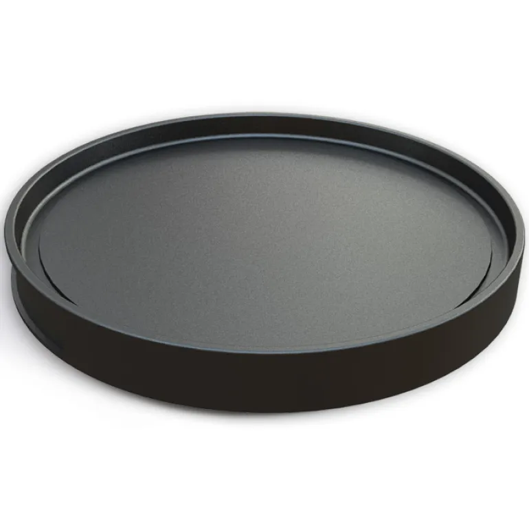 Kaksipuolinen teppanyaki-keittotaso, toiselta puolelta sileä ja toiselta uurrettu. Sopii 34 cm:n kokoiseen LotusGrill-grilliin.