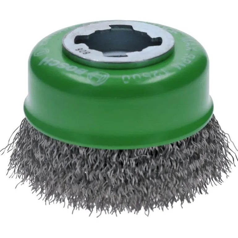 - Erityisesti metallille tarkoitetun kuppiteräsharjan aallotettu teräslanka sopii kevyeen ja keskikovaan puhdistukseen