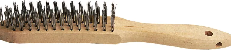 Ruostumaton teräs ja puuvarsi. Pituus 280mm. Harjasten pituus 25mm.