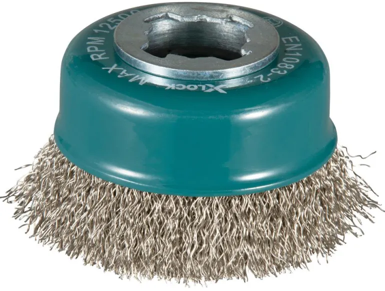 Teräsharja (kuppiharja) kulmahiomakoneelle. X-Lock -pikakiinnitys. Eri materiaalien ja esim. ruosteen poistoon metalli- ja teräspinnoilta.