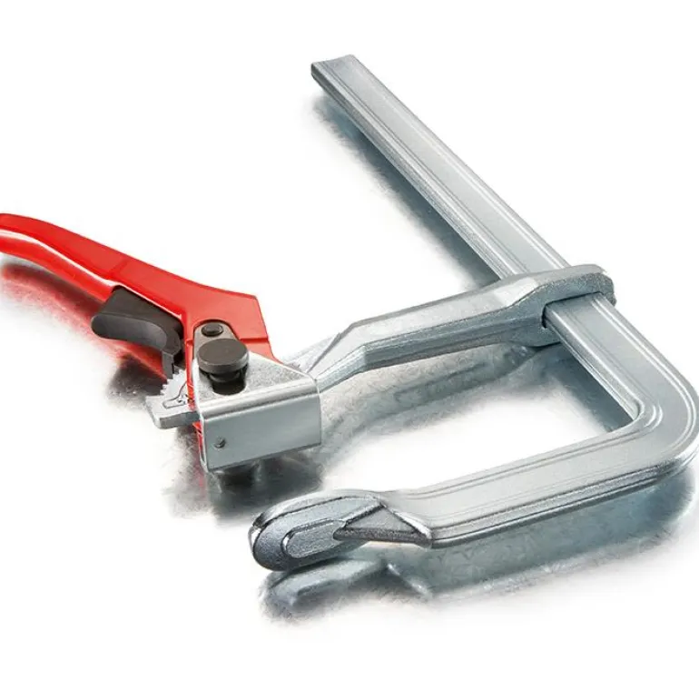 Bessey GH25 -teräspuristin, aukkoväli 250 mm ja syvyys 120 mm. Teräspuristimessa on pikalukitus ja se on jopa 5 kertaa nopeampi kuin perinteiset puristimet, puristusvoima 8000 N.