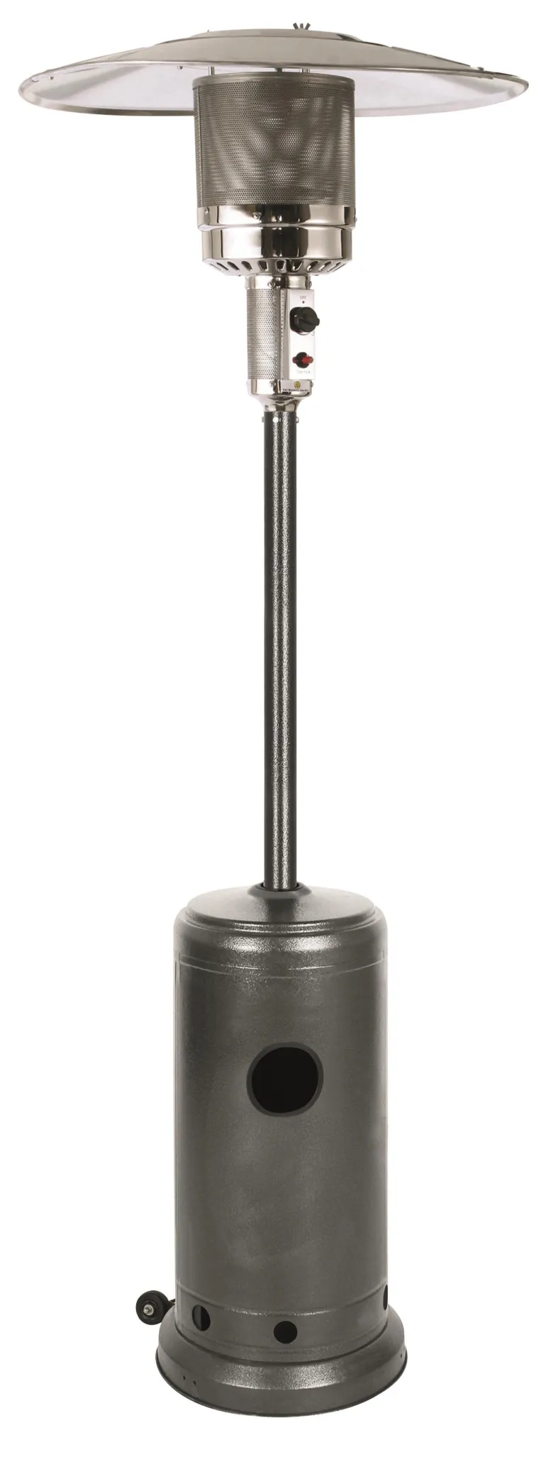 Terassilämmitin, jossa ruostumaton poltin ja pietsosytytin. Sytytyssulake katkaisee nestekaasun syötön, jos liekki sammuu. Kaatumissuoja. Terassilämmittimeen mahtuu nestekaasuputkia P10/PK11:een asti.