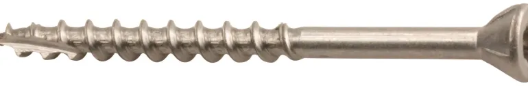 Uppokantainen terassiruuvi, joka on tarkoitettu terassilautojen ja kaiteiden kiinnittämiseen puukoolaukseen. Sopii sekä sisä- että ulkokäyttöön.