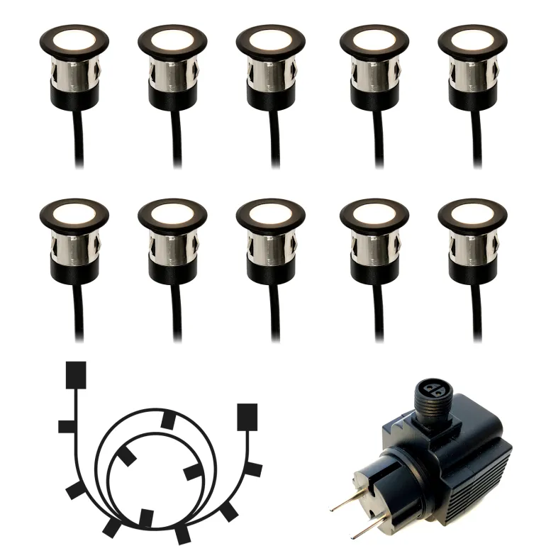 Täydellinen pakettiratkaisu sisältäen 10 kpl Orion-terassivalaisimia. Mukana muuntaja, joka on mitoitettu valaisinten kokonaismäärälle sekä kymmenen metrin haaroituskaapeli.