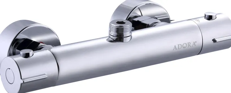 Adora Exigo UP 160 on sylinterimäinen termostaattisekoitin, jossa 1/2 ja 3/4 tuuman suihkuliitäntä sekoittimen. Energiansäästötoiminto ja kuuman veden rajoitin. Toimitus sisältää yhteensopivat peitelevyt. Voidaan täydentää epäkeskolla ruotsalaiseen standardiin 160 c/c sopivaksi. VA-hyväksytty.
