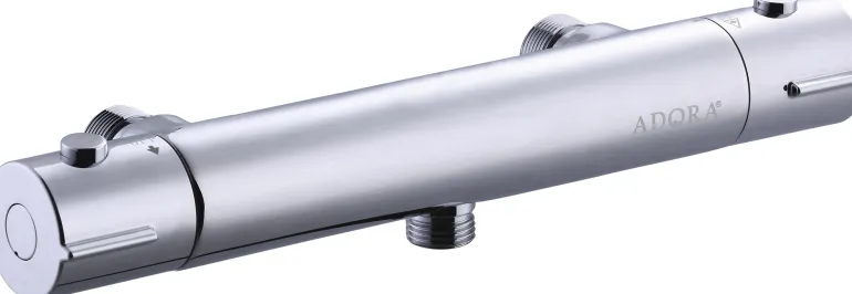 Adora Exigo 160 on sylinterimäinen termostaattisekoitin, jossa ½ tuuman suihkuliitäntä sekoittimen alaosassa. Energiansäästötoiminto ja kuuman veden rajoitin. Toimitus sisältää yhteensopivat peitelevyt. Voidaan täydentää epäkeskolla ruotsalaiseen standardiin 160 c/c sopivaksi. VA-hyväksytty.