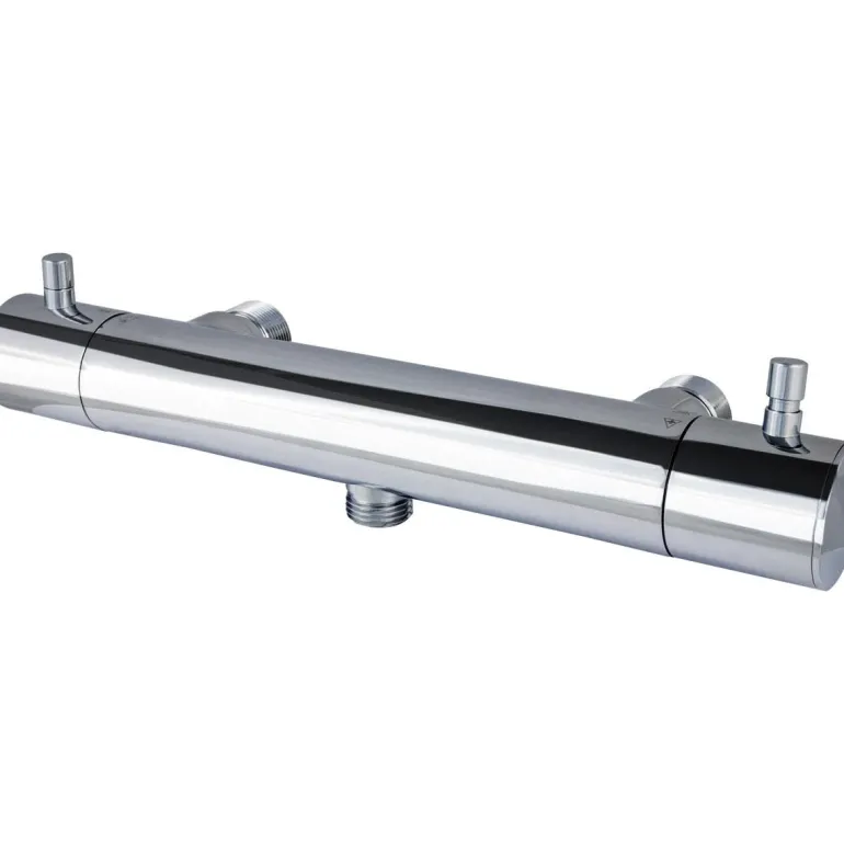 160 k/k termostaattisekoitin, joka säätää painetta palovammojen välttämiseksi. Sekoittimen pinta on kromattu, ulostulo alaspäin.