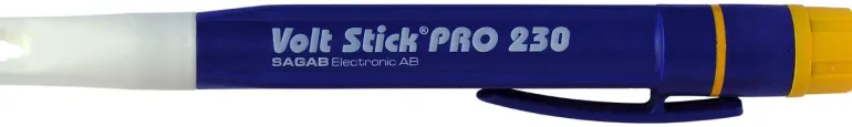 SAGAB Volt Stick Phase PRO 230 on testilaite, joka haarukanmuotoisella kärjellään tarjoaa vertaansa vailla olevan selektiivisyyden ja vähentää virheilmoituksen riskiä. Tämä johtuu siitä, että suurin herkkyys on kahden haarukan välissä. Haarukan ulkopuolella herkkyys on alhainen, minkä vuoksi ulkoisella häiriökentällä on vain vähän vaikutusta. Jännitettä kantavat kaapelit voidaan helposti erottaa laitekaapeissa, pistokekaapeissa jne. Suuri turvallisuus mitattaessa kytkentärasioissa. Mukana toimitetulla kenttävahvistimella voidaan tarkastaa suurempia esineitä, kuten sulakkeet ja karkeammat kaapelit. Kirkkaan punainen valo kärjessä ilmoittaa jännitteisyyden havaitsemisesta. Täyseristetty malli turvallista käyttöä varten.