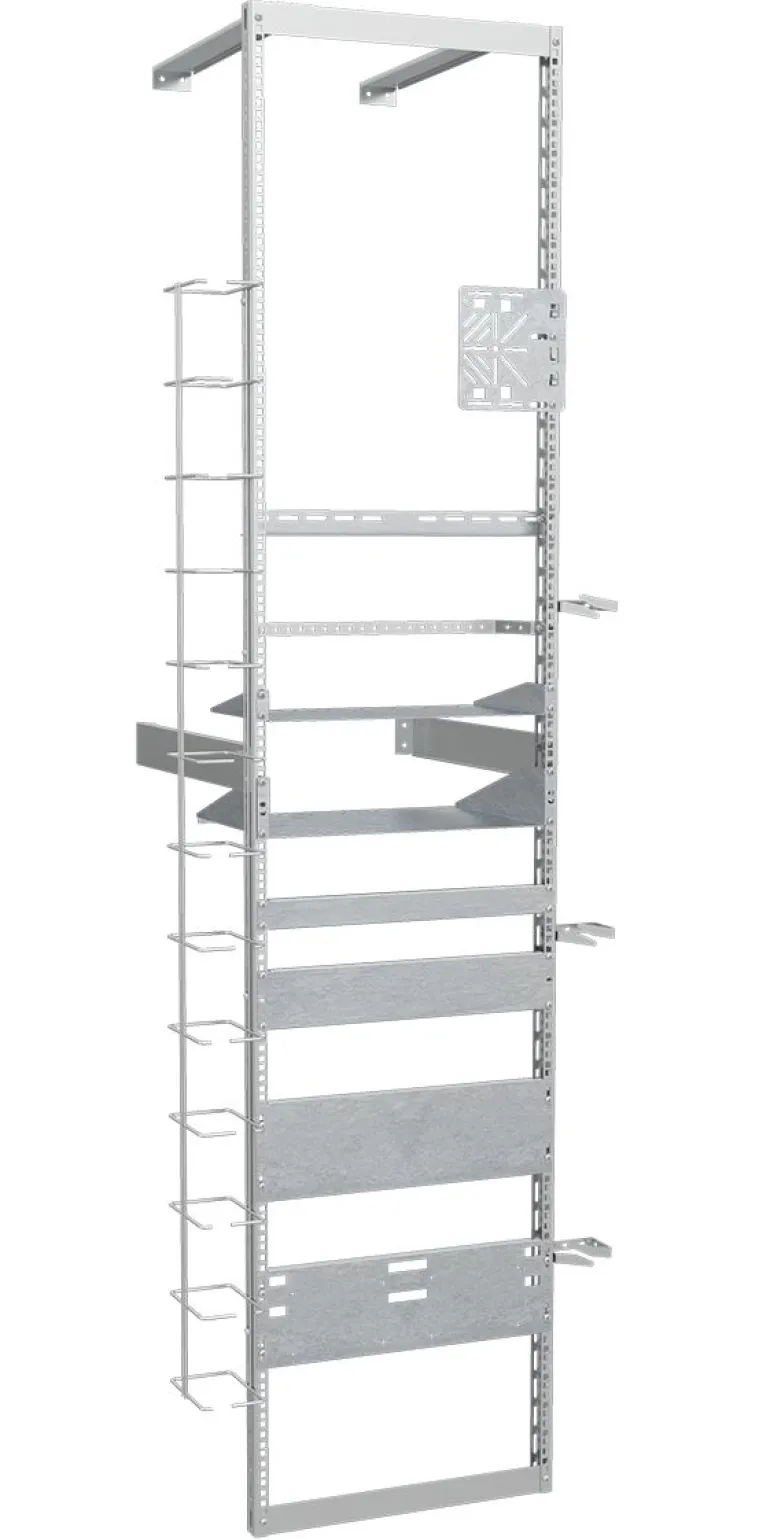 MP-19 jalusta – sähkösinkitty asennussarja, jossa täyttyy kaksi standardia yhdessä jalustassa – data toisella puolella SS IEC 297:n mukaan rei ’illä varustettuna korimutterille M6.