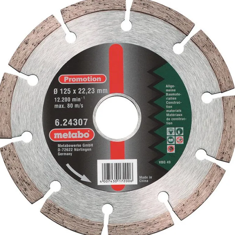 Timanttikatkaisulaikka kaikille tavanomaisille rakennusmateriaaleille, esim. betonille, pesubetonille, kovalle hiekkakivelle ja savitiilelle. Mitat – 125×22,23 mm.