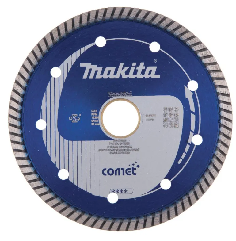 Makita Comet Rapide -timanttikatkaisulaikka, jonka halkaisija 125 mm ja segmentin korkeus 7 mm. Reiän halkaisija on 22,23 mm. Suunniteltu leikkaamaan graniittia, kalkkikiveä, liuskekiveä, kovaa betonia ja muita tiheitä materiaaleja. Paras terä graniitin nopeaan leikkaamiseen.