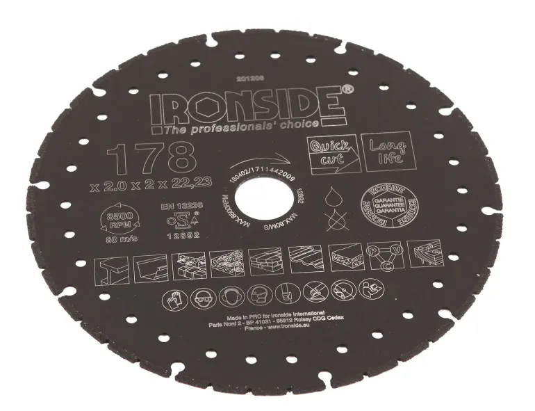 Timanttilaikka Rescue. Messinkijuotos. Vahvistetulle betonille, betonille, tiilelle, ei-rauta metalleille. Sopii muuraukselle, koville rakennusmateriaaleille, kivelle, levyille, naulaiselle puulle, teräkselle ja PVC:lle.
