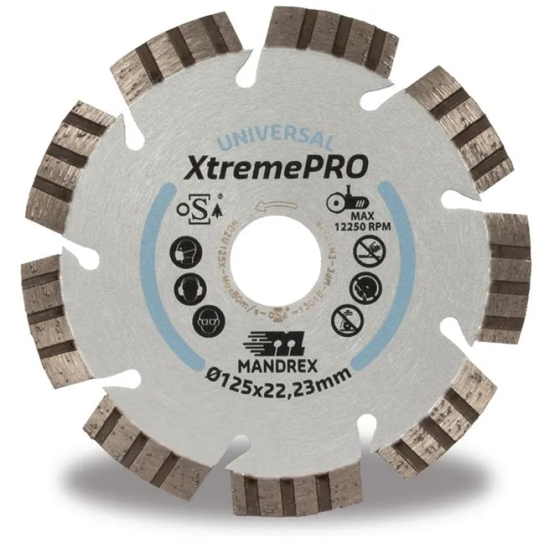 Korkealaatuisessa Mandrex Universal XtremePRO -timanttilaikassa on laserhitsattu terä ja laajat käyttömahdollisuudet. Katkaisulaippa on halkaisijaltaan 115 mm ja se soveltuu betonin, tiilen, kiven, valuraudan, teräksen, kattotiilien ja asfaltin leikkaamiseen.