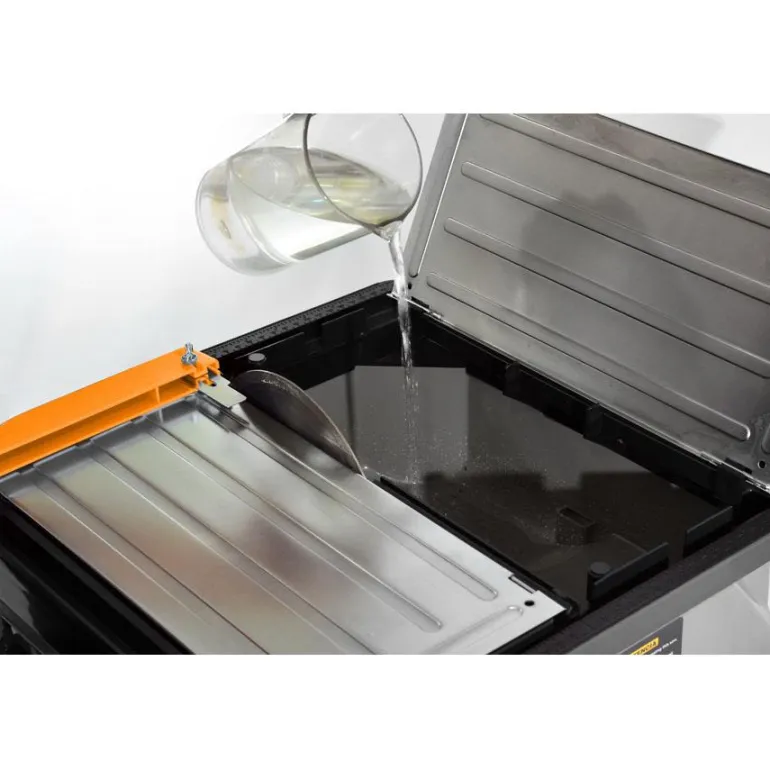 560 W vesijäähdytteinen timanttisaha nopeudella 2800 rpm. Saha on tehokas ja varustettu vahvistetulla sahapöydällä, joka kestää suuria kuormia. Kantokahva helpottaa timanttisahan kuljettamista.