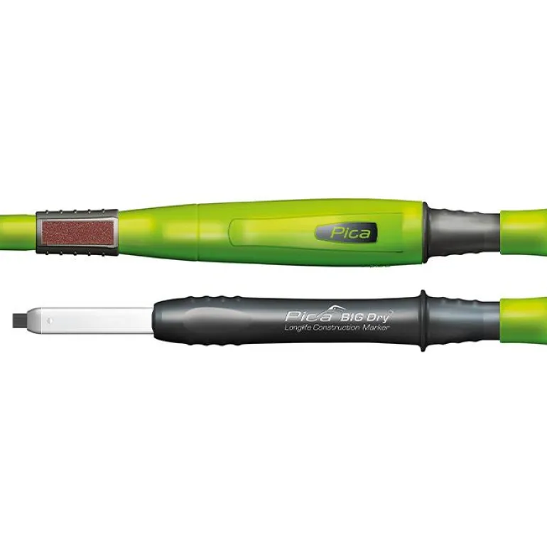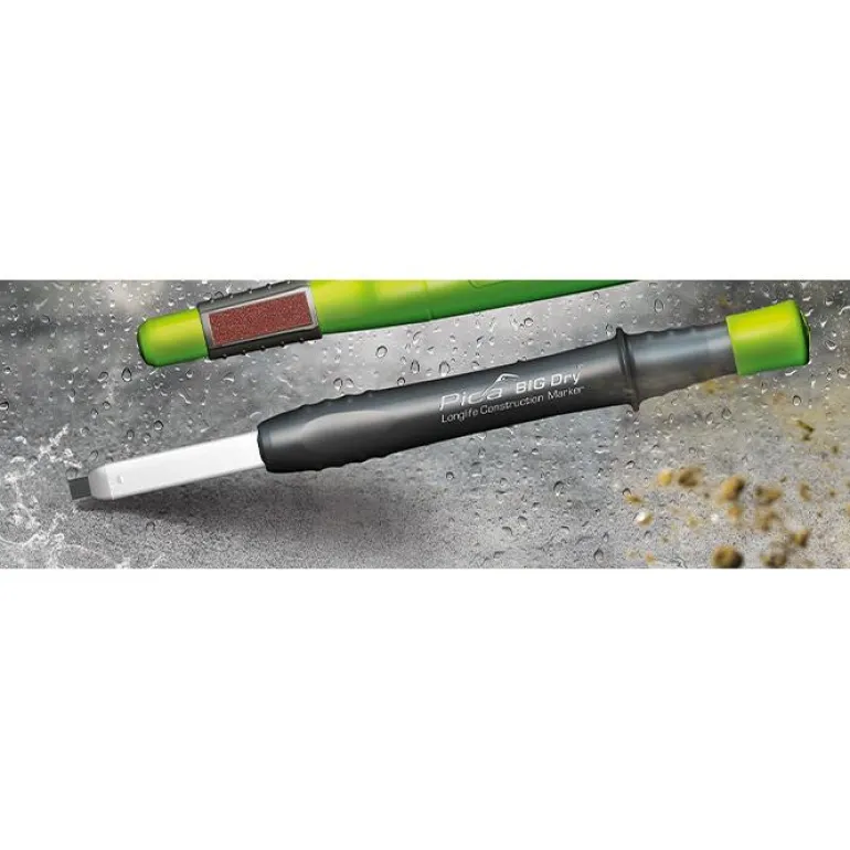 Pica BIG-Dry on vankka ja kestävä timpurin merkkauskynä kaikenlaisten materiaalien, myös likaisten ja öljyisten pintojen, merkitsemiseen. BIG-Dry voidaan täyttää uudelleen erilaisilla vaihtoterillä ja se on yhteensopiva 2B-grafiittikärkien kanssa. Kärki on helppo täyttää kynän takaosasta. Kynässä on varusteena tukeva vyökiinnike ja hiontapinta teroittamista varten. Toimitus sisältää suorakaiteen muotoisen, harmaan lyijyn, jonka mitat ovat 2 x 5 x 150 mm.