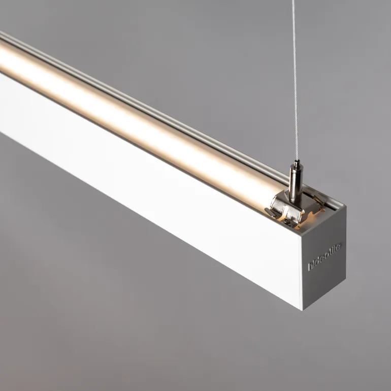 Himmennettävä perusvalaisin valonjakaumalla 50/50, sopii erinomaisesti toimistoihin ja pieniin tiloihin. Runko ja päädyt valkoiseksi lakattua alumiinia. Mikroprismahäikäisysuoja luo häikäisemättömän valokuvion alaspäin, ja ylös suunnattu valo luo epäsuoran ja varjottoman valon. Vetokatkaisin ylös- ja alasvalon yhteiseen himmennykseen. Muistitoiminto viimeksi asetettua arvoa varten sähkökatkon yhteydessä.