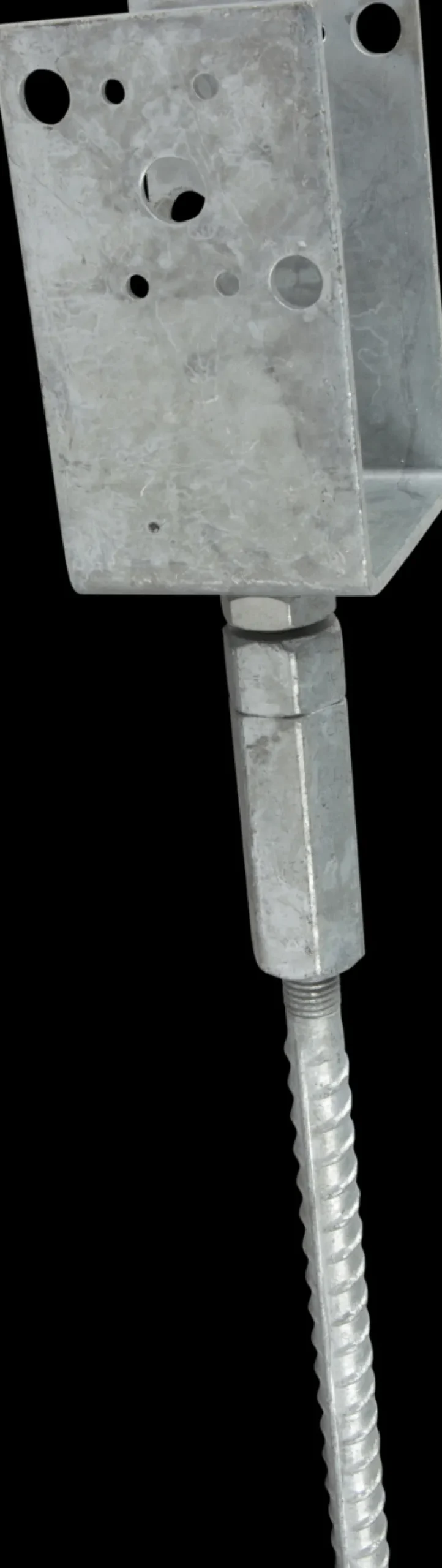 Säädettävä pilarikenkä, malli UJ, valetaan betoniin tai kiveen. Pylväs tai tolppa kiinnitetään pilarikenkään kuormituksen mukaan valittavalla ruuvilla.