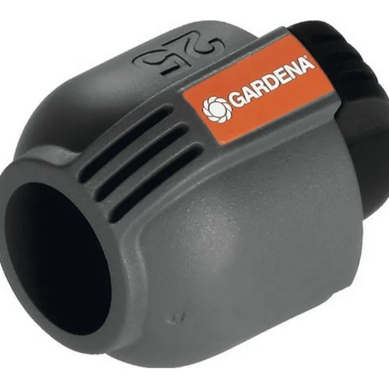 25 mm:n päätykappale, joka on osa GARDENA-sadetinjärjestelmää ja jota käytetään haaroitusputken pään pitävään sulkemiseen