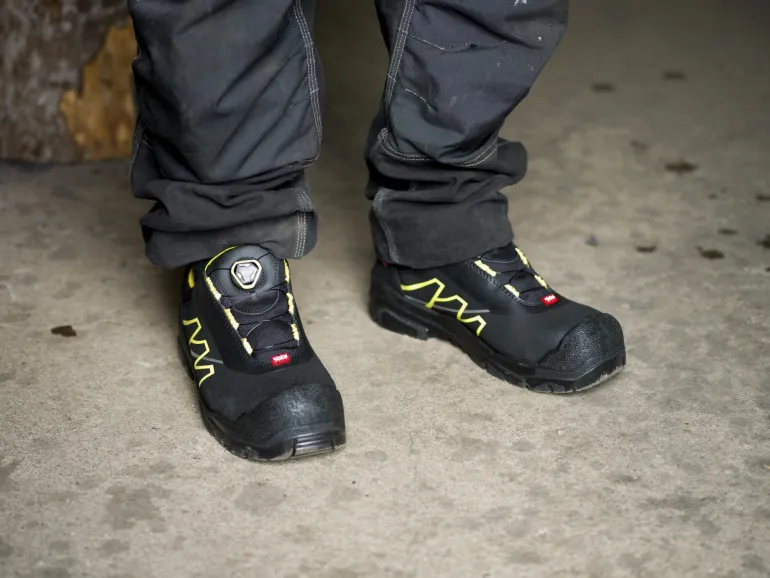 Turvajalkine, jossa tilava lesti. Erinomainen suojaus vaativiin ympäristöihin. BOA®-kiinnitysjärjestelmä tarjoaa erinomaisen istuvuuden sekä helpottaa pukemista ja riisumista.