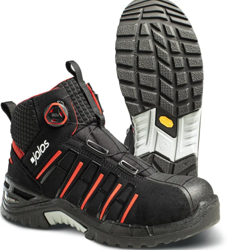 JALAS® EXALTER 9985 on varrellinen turvajalkine, jossa on kaikki mitä tarvitset useimpiin työtilanteisiin: PTC-tekstiilinen naulaanastumissuoja, alumiininen varvassuoja ja Vibram-nitriilikumipohja. Malli tarjoaa ylimääräistä nilkkatukea ja PORON® XRD™-iskunvaimennus estää jalka- ja selkävammat. Verkkopäällysteiset tuuletusaukot päällisessä pitävät jalat viileinä ja estävät hiekan pääsyn jalkineisiin. BOA®-kiinnitysjärjestelmä helpottaa jalkineen pukemista ja riisumista.