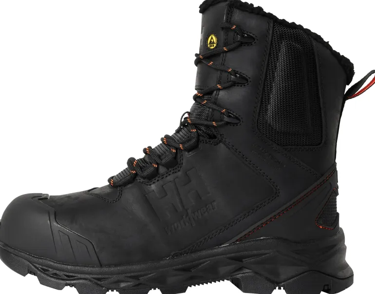Helly Hansen Workwear Oxford -malliston vuorilliset, korkeavartiset talviturvakengät ovat kestävät ja mukavat. Niissä on leveä lesti, hyvä istuvuus ja pehmeä, tehokas iskunvaimennus. Metalliton komposiittivarvassuoja ja -naulaanastumissuoja. Nupukkinahkapäällinen ja vedenpitävä Helly Tech® -kalvo pitävät jalat kuivina. Primaloft®-eristys ja YKK®-vetoketju viimeistelevät tämän talviturvajalkineen.