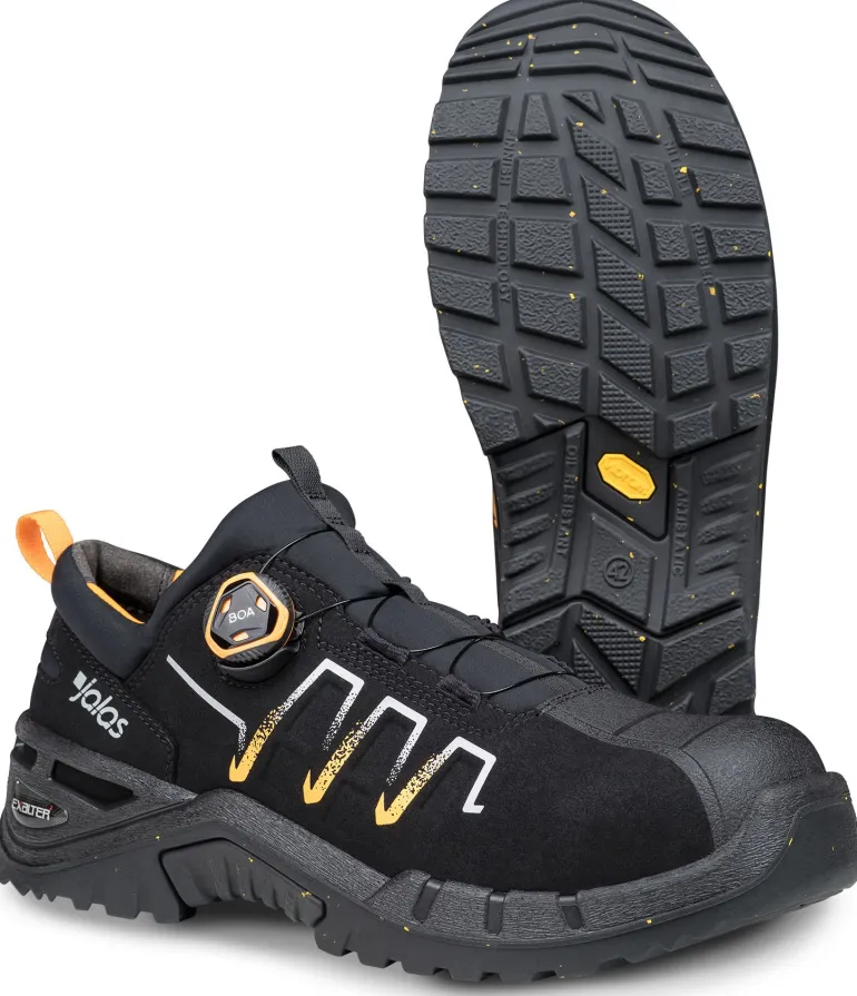 JALAS Exalter 9995. Uutta Exalter-sukupolvea on päivitetty useilla kierrätetyillä ja biopohjaisilla materiaaleilla tinkimättä kestävyyden, käyttömukavuuden ja keveyden ylivertaisesta yhdistelmästä, johon käyttäjät ovat luottaneet jo vuosia. Biopohjainen vettä hylkivä mikrokuitupäällinen pitää jalat kuivina. BOA®-kiinnitysjärjestelmä (kierrätysmateriaalista) sivulla eliminoi painepisteet. Alumiininen varvassuoja ja kierrätetty metalliton naulaanastumissuoja, sekä pitoa parantava Vibram-ulkopohja kierrätettyä nitriilikumia.