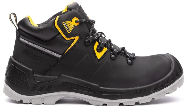 Monitor Midway on tukeva turvajalkine monipuoliseen käyttöön. Turvakärki on komposiittia ja naulasuoja APT-tekstiiliä. Kenkä on täysin metalliton. Päällinen on aitoa öljyttyä nahkaa ja sisus kosteutta imevää ja kosteutta siirtävää tekstiiliä. Ulkopohja on 2-tiheyksistä polyuretaania, joka vaimentaa tehokkaasti.