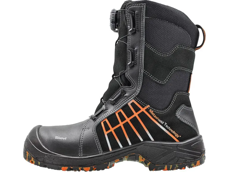 Sievi MGuard RollerW XL+ S3 HRO on musta talviturvakenkä, jossa on lämmin vuori sekä vettähylkivä ja ympäristöystävällinen PrimaLoft®-lämmöneriste. Integroitu Metashield®-jalkapöydänsuoja vaimentaa jalkapöytään kohdistuvia iskuja jopa 90 %. TractionPro®-pohja varmistaa maksimaalisen pidon ja käyttömukavuutta lisää FlexEnergy®-joustoelementti, lämmin Alu-pohjallinen, BOA® Fit System -kiinnitysmekanismi sekä XL-lesti.