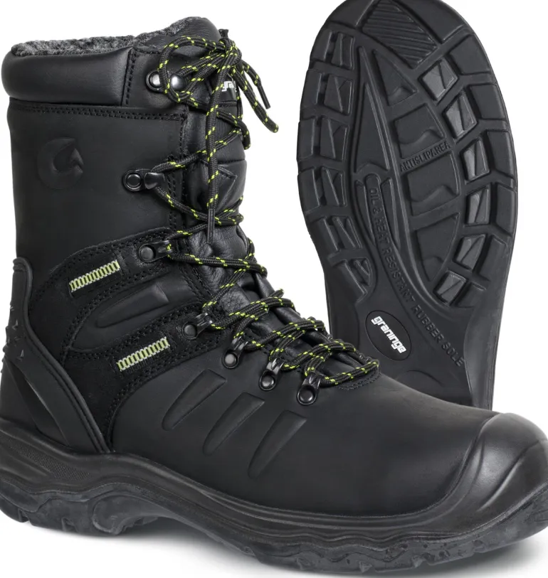 Graninge 7299 on lämpimät turvakengät, joissa on nauhakiinnitys, vetoketju, nitriiliulkopohja ja öljytty pintamateriaali (nahka).