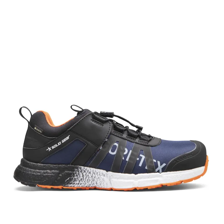 Solid Gear Revolution 2 GTX on matalavartinen turvakenkä, joka on erittäin mukava koko työpäivän. ETPU-teknologialla varustettu matalatiheyksinen välipohja tarjoaa hyvän pehmusteen, mikä parantaa mukavuutta ja energian palautusta. Turvakengissä on GORE-TEX-kalvo, joka on vedenpitävä. CORDURA on erittäin kestävä ja repeytymätön kangas, jonka hengittävyys on erittäin hyvä. Se on yhdistetty GORE-TEX Stretch -teknologiaan. Speed lacing -nyöritystoiminnon ansiosta kenkä voidaan pukea ja riisua nopeasti. Jos kuitenkin haluat käyttää perinteisiä nauhoja, Speed lacing -nauhat voi helposti korvata tavallisilla kengännauhoilla. Mukana tulee OrthoLite-sisäpohjallinen, joka tarjoaa sekä tukea että hyvän pehmusteen. Solid Gear Revolution 2 GTX:ssä on turvakärki ja naulaanastumissuoja.