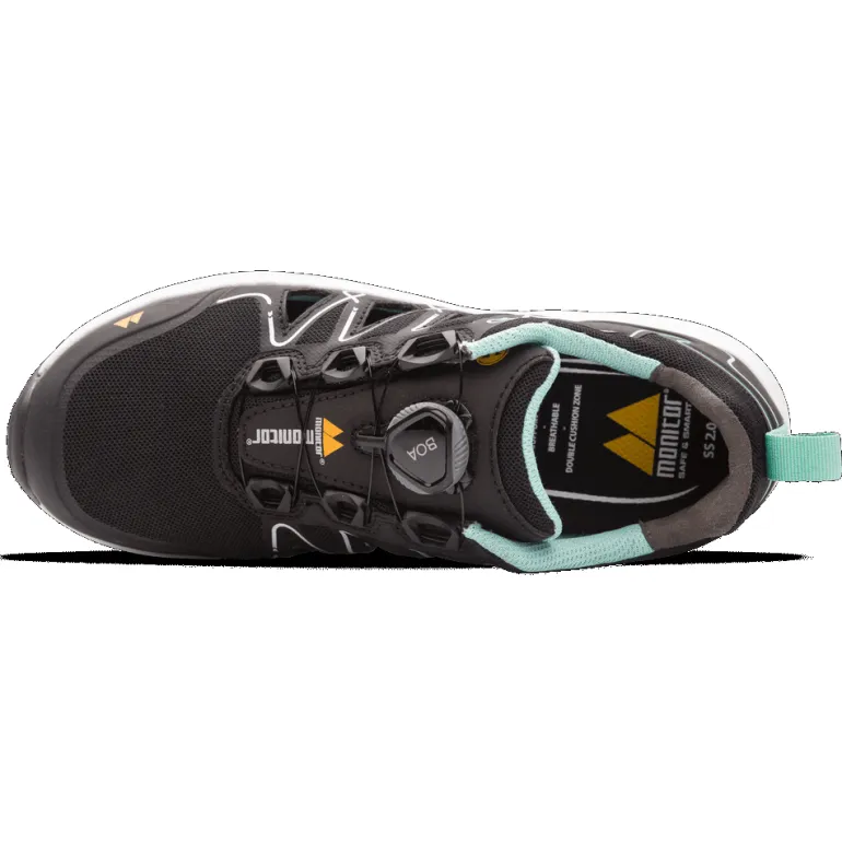 Monitor Mint on uusin tulokas Monitorin panostuksessa optimaaliseen naisten turvakenkään. Päällinen on mikrokuitua ja tekstiiliä, ja molemmilla puolilla on laajat tuuletusalueet. Pohjajärjestelmä on täysin uusi ja kehitetty tätä MoniShe-kenkäsarjaa varten, jossa välipohja on valmistettu hyvin kevyestä, kestävästä ja vaimentavasta M-rebound recover (M-RR)-materiaalista. Kulutuspohja on liukastumista ehkäisevää kumia, ja sillä on SRC -ominaisuudet. Naulasuoja on Monitorin uusi Pantzar APT, joka on hyvin kevyt, joustava ja luotettava. Alumiininen ja leveä varvassuoja. Pohjallinen on Monitorin SS 2.0.