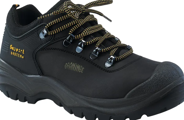 Turvakengät, joissa alumiininen turvakärki ja teräksinen pistonkestävä pohja. Paljekieli ja tukijärjestelmä, joka vahvistaa tukea kantapään ympärillä