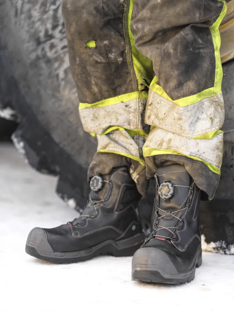 Jalas 1358 Heavy Duty on kestävä, vettä hylkivä keskikorkea turvanilkkuri, jossa on BOA® Fit System. Öljyn- ja lämmönkestävä Arctic Grip Vibram -ulkopohja antaa erinomaisen pidon liukkaalla. Komposiittinen turvakärki ja tekstiilinen pistosuojaus. Päällinen pu-päällystettyä nahkaa, paljekieli. Tekninen fleecevuori. Pitävä, öljyä ja lämpöä kestävä nitriilikuminen ulkopohja ja erittäin kevyt PU-välipohja. Hengittävä pohjallinen kaksinkertaisella pehmustevyöhykkeellä Poron XRD. Antistaattiset ominaisuudet. ESD-hyväksytty. Normaali lesti. Suojausluokka S3.