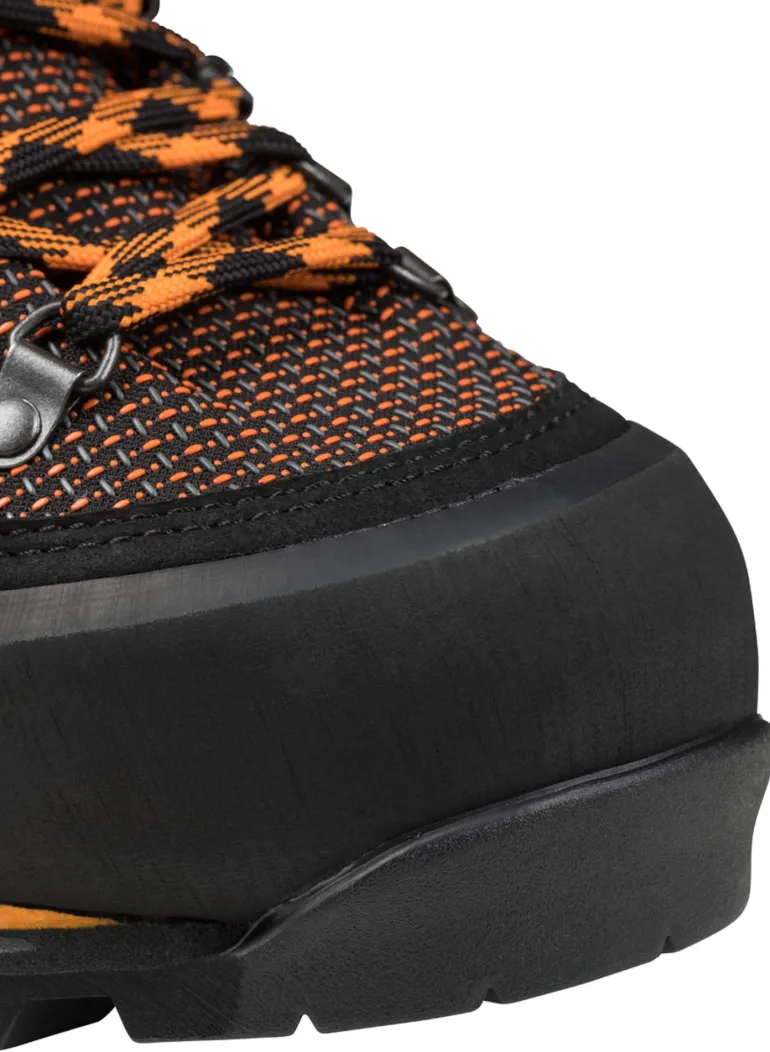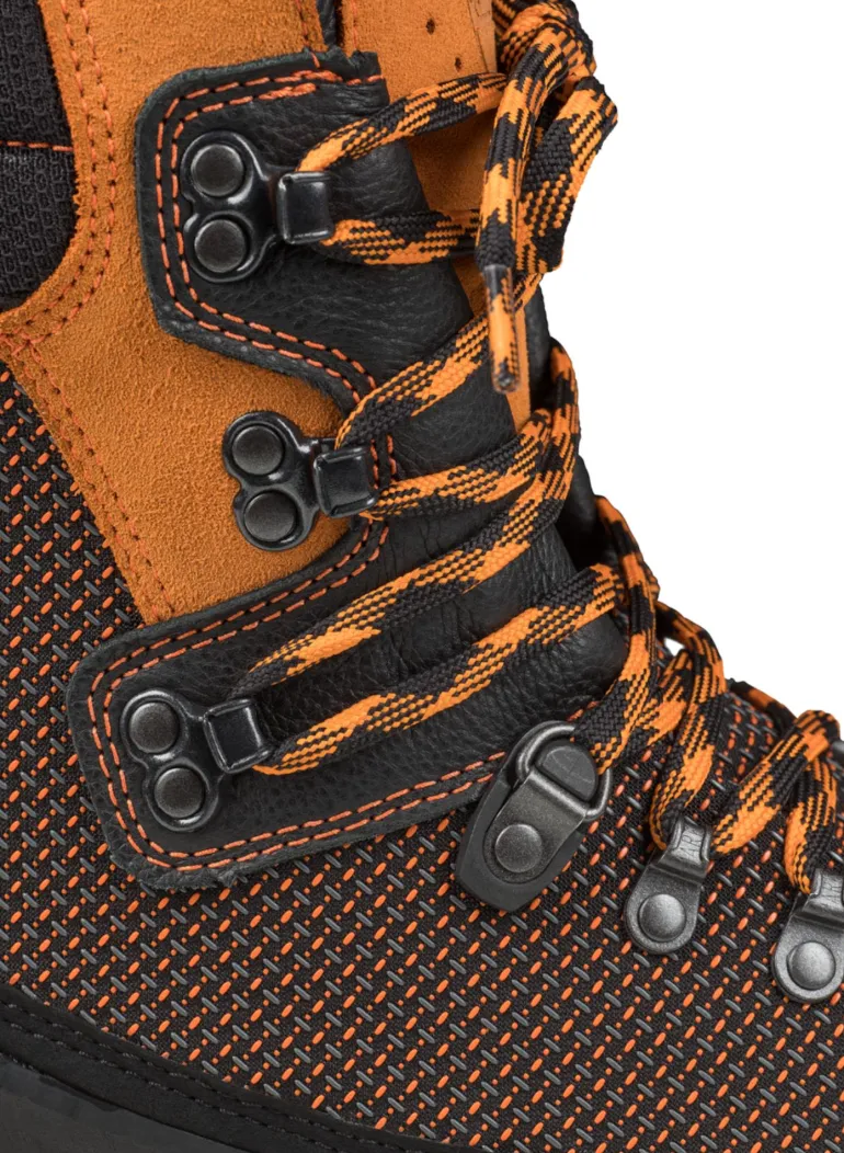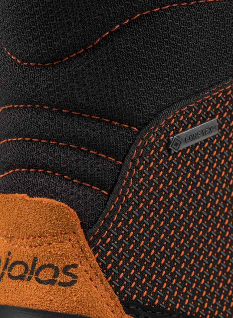 JALAS 1988 on vaelluskenkämäinen ja vankka turvasaapas (taso 2) moottorisahatöihin. GORE-TEX-kalvon ansiosta jalkine on täysin vedenpitävä, ja Vibram®-nitriilikumipohja takaa varman pidon myös märissä ja liukkaissa olosuhteissa. Päällismateriaalit nupukki, pehmeä pintanahka ja tekninen tekstiili luovat urheilullisuutta ja vaellushenkisyyttä. Jalkineessa on teräksinen varvassuoja ja pehmeä tekstiilinen naulaanastumissuoja.