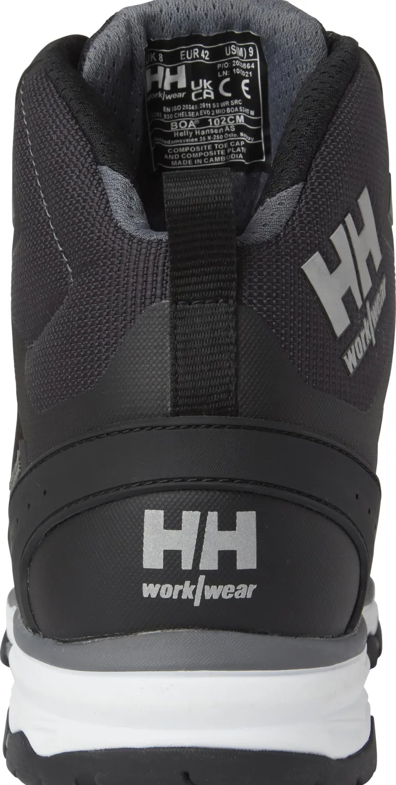 Helly Hansen Workwear Chelsea Evolution 2 Mid on vedenpitävä turvakenkä. Kengässä on vaimentava EVA-välipohja ja Ortholite X25 Hybrid-pohjallinen parempaa käyttömukavuutta varten.
