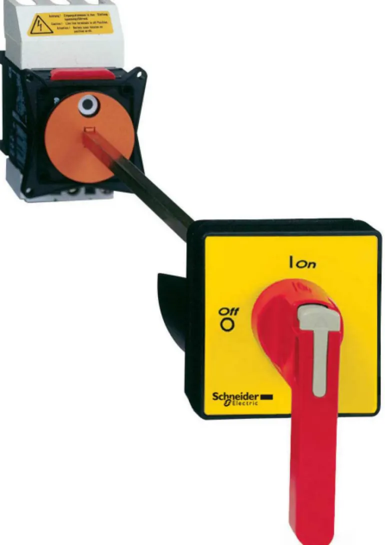 Schneider Electric VCCD1 -turvakytkin, punainen. 25 A akselilla pohjaan asennusta varten.