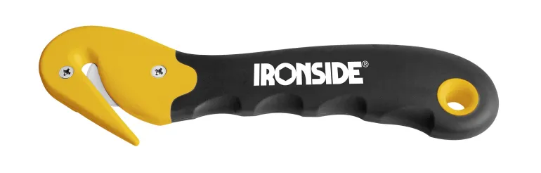Turvaveitsi kartongin ja muovin avaamiseen/leikkaamiseen. Pää keltaista ABS-muovia, musta kumikahva. Soveltuu sekä oikea- että vastenkätisille.