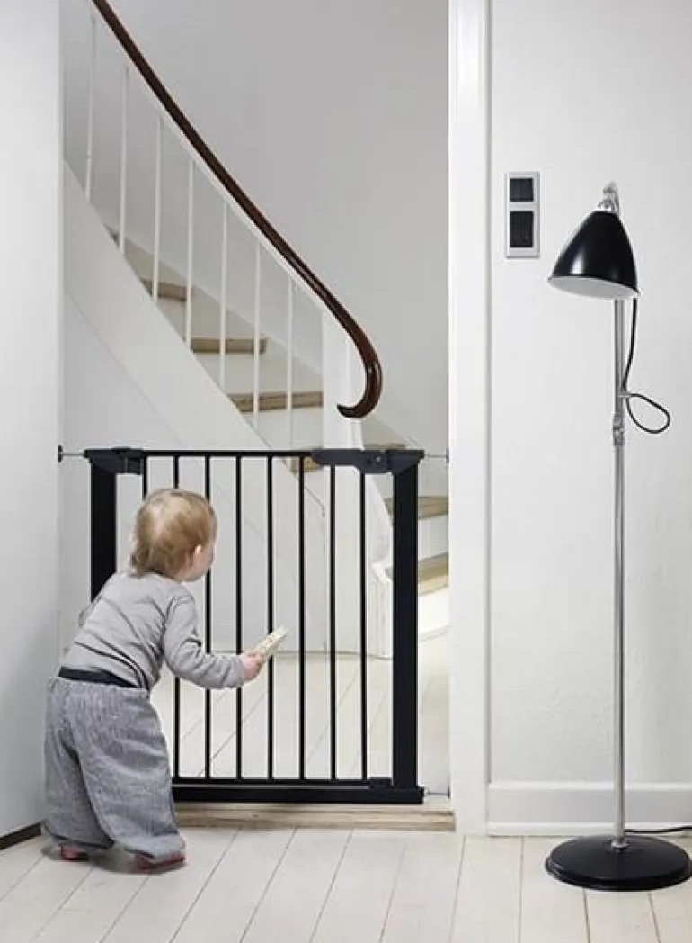 Baby Dan Premier Pressure on pingotettava turvaportti. Premier Indicator Upgrade on suositun Baby Dan Premier -turvaportin päivitetty malli, jossa on klassisen mallin lisäksi uusia ominaisuuksia. Aikuisen on nyt entistä helpompi avata kahva. Turvamerkki sijaitsee kahvassa, joten siitä on entistä helpompi nähdä, että portti on kunnolla suljettu. Premier Pressure on pingotettava turvaportti, joten ruuvikiinnitystä ei tarvita. Portti ei siis jätä ruuvinjälkiä seinään tai ovenkarmeihin käytön jälkeen. Kaikissa Baby Danin pingotettavissa porteissa on turvamerkki. Silloin kun merkkiä ei näy/se on valkoinen, portti on asennettu oikein. Jos merkki on näkyvissä/se on valkoinen, muttereita tulee kiristää lisää. Jos punaiset merkinnät jäävät näkyvin, kun portti on suljettuna, portti tulee kiinnittää seinäkiinnikkeillä. Jos tämä ei auta, porttia ei tule käyttää oviaukossa. Valitse silloin ruuveilla kiinnitettävä portti. Baby Danin korkealaatuiset turvaportit valmistetaan Tanskassa. Tuote on testattu ja hyväksytty standardin EN 1930:2011 mukaisesti.