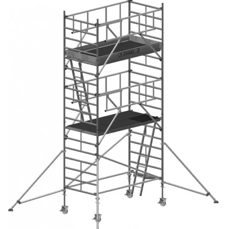 - Turvallinen ja nopea pystyttää ja purkaa ja irrotettavien kaiteiden ja 2 m:n etäisyydellä olevien tasojen ansiosta.