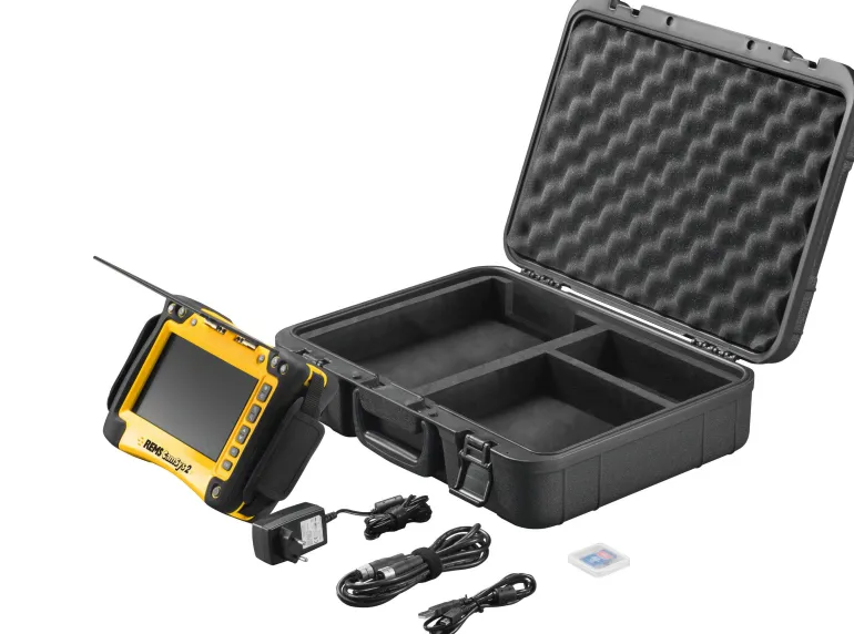 REMS CamSys 2 Basic-Pack on mikroprosessoriohjattu ohjainyksikkö. 7″:n TFT-LCD-värinäyttö, SD-korttipaikka, USB-liitäntä, videolähtö PAL/NTSC ja integroitu litiumpolymeeriakku 3,7 V, 7,6 Ah.
