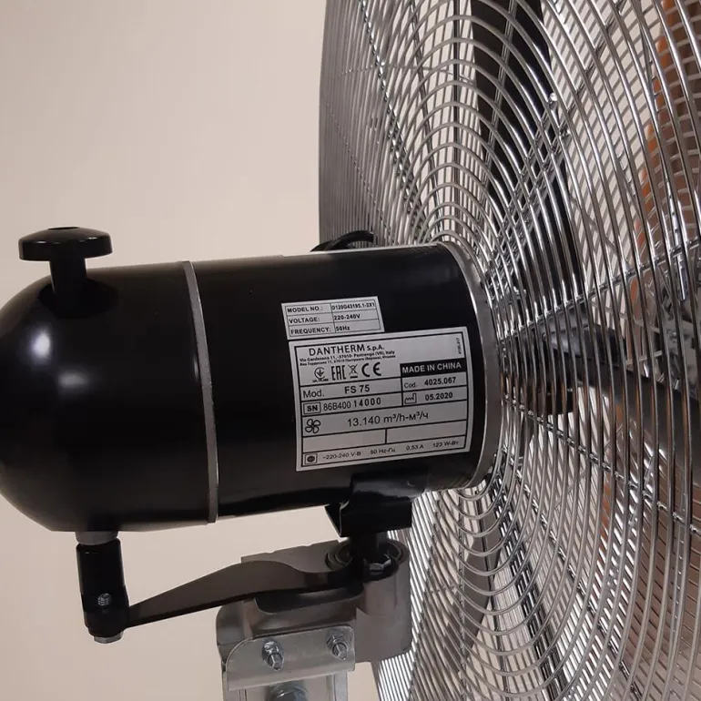 Ø 750 mm teollisuustuuletin 2 nopeudella ja teleskooppijalustalla, joka on suunniteltu teolliseen-/ammattikäyttöön. Vankka ja kestävä rakenne. Materiaalina metalli, tukeva jalka valurautaa ja kromattu tuulettimen ritilä.
