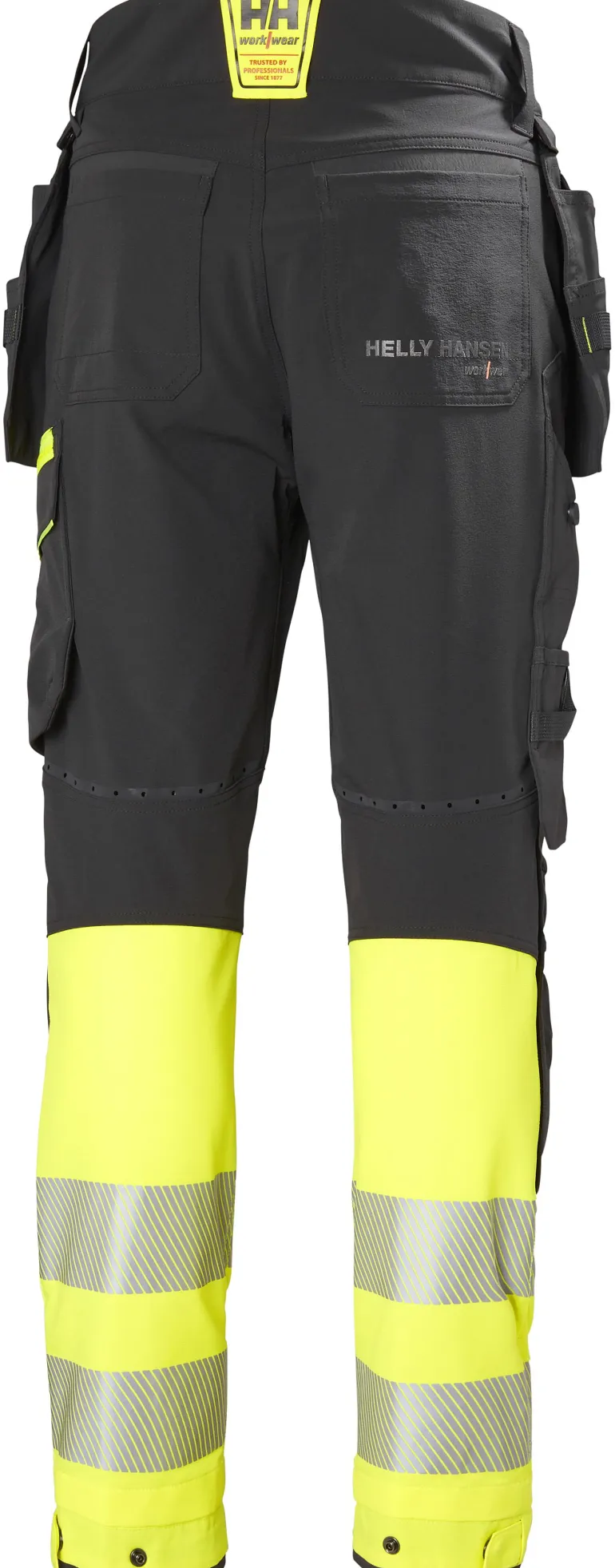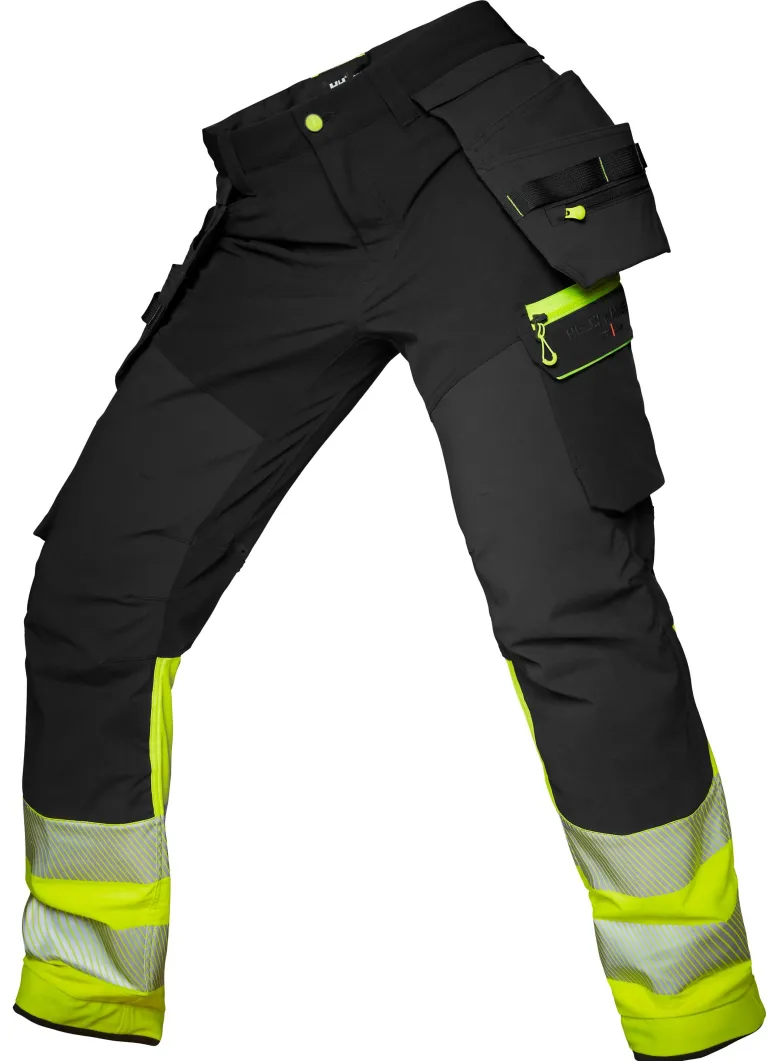 ICU BRZ -huomiorakennustyöhousut (luokka 1) neljään suuntaan joustavaa kangasta useilla käytännöllisillä ominaisuuksilla, kuten Cordura®-riipputaskuilla, joustavilla Cordura®-polvivahvikkeilla, polvisuojataskuilla ja ilmanvaihtoaukoilla takana. Mahdollisuus pidentää lahjepituutta 5 cm. Vetoketjulliset Cordura®-riipputaskut, joissa kaksinkertainen pohja ja kestävät nailontyökalulenkit. Painonapeilla säädettävät lahkeensuut. OEKO-TEX-hyväksytty materiaali. EN ISO 20471:2013: 1.