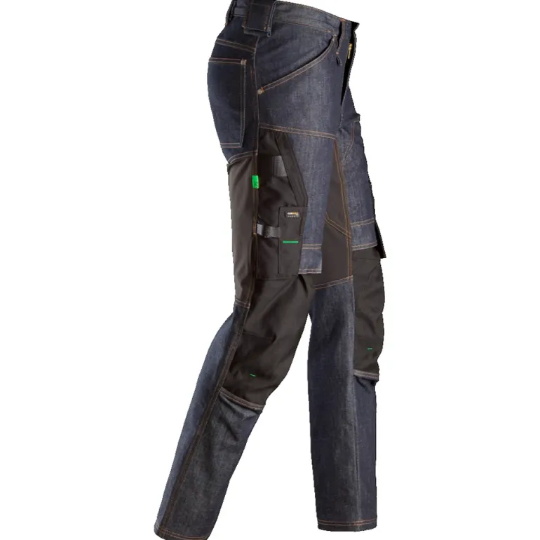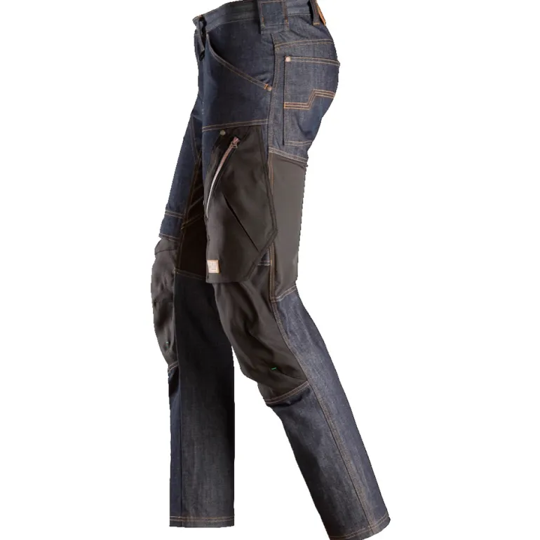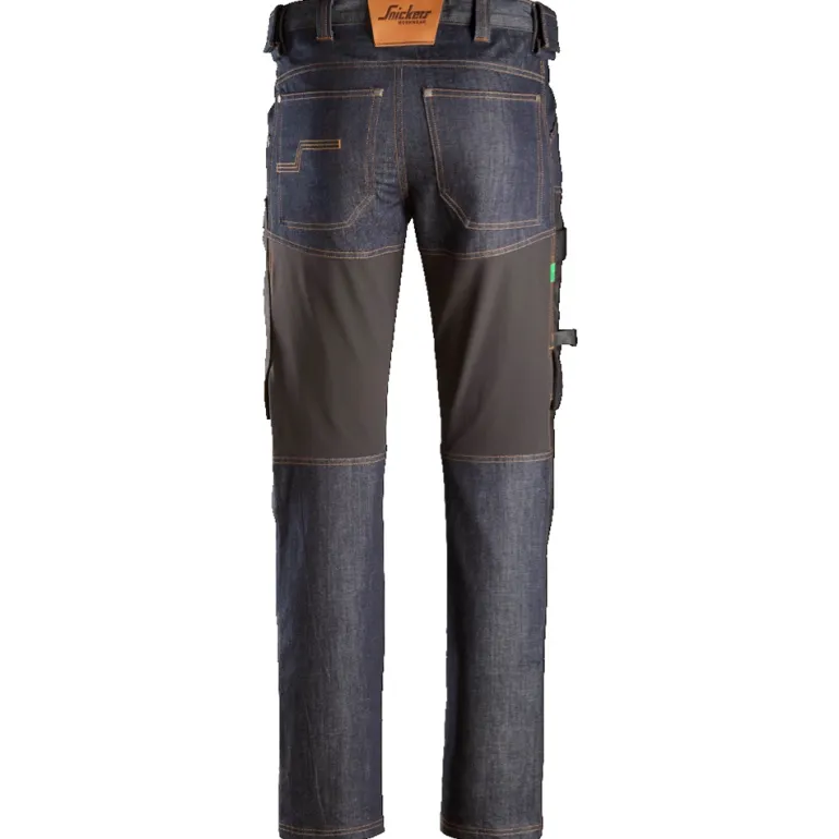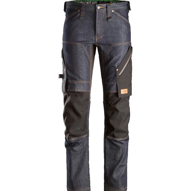 Työhousut denim-kangasta, päivittäiseen käyttöön. Kapea istuvuus. Kestävissä housuissa yhdistyvät suojaus, työskentelymukavuus, joustavuus ja liikkumisen vapaus. Kapea istuvuus.