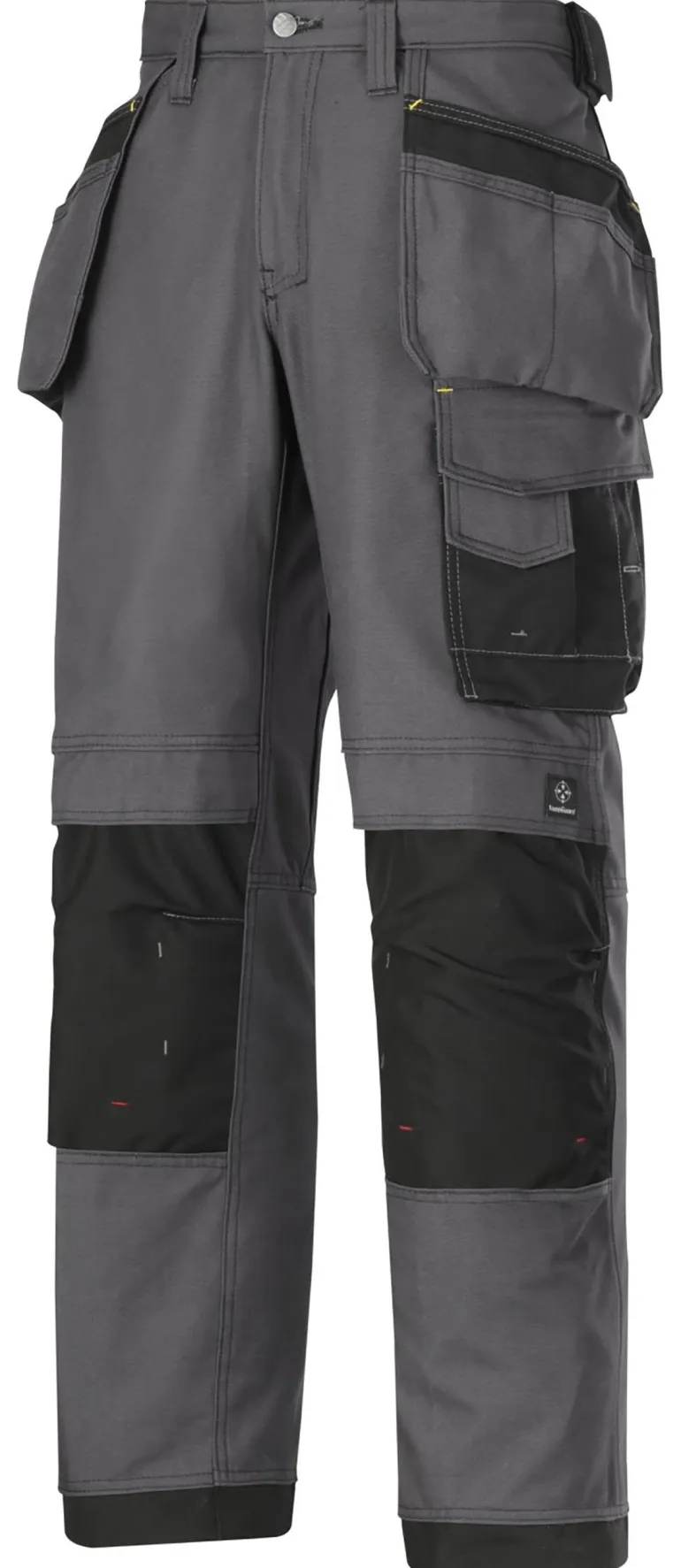 Työhousut on valmistettu CanvasPlus-kankaasta, ja niissä on KneeGuard-polvisuojajärjestelmä. Mukavissa housuissa on erittäin matala vyötärö ja hieman leveämpi reisiosa. Taskuissa ja lahkeensuissa on Cordura-vahvikkeet.