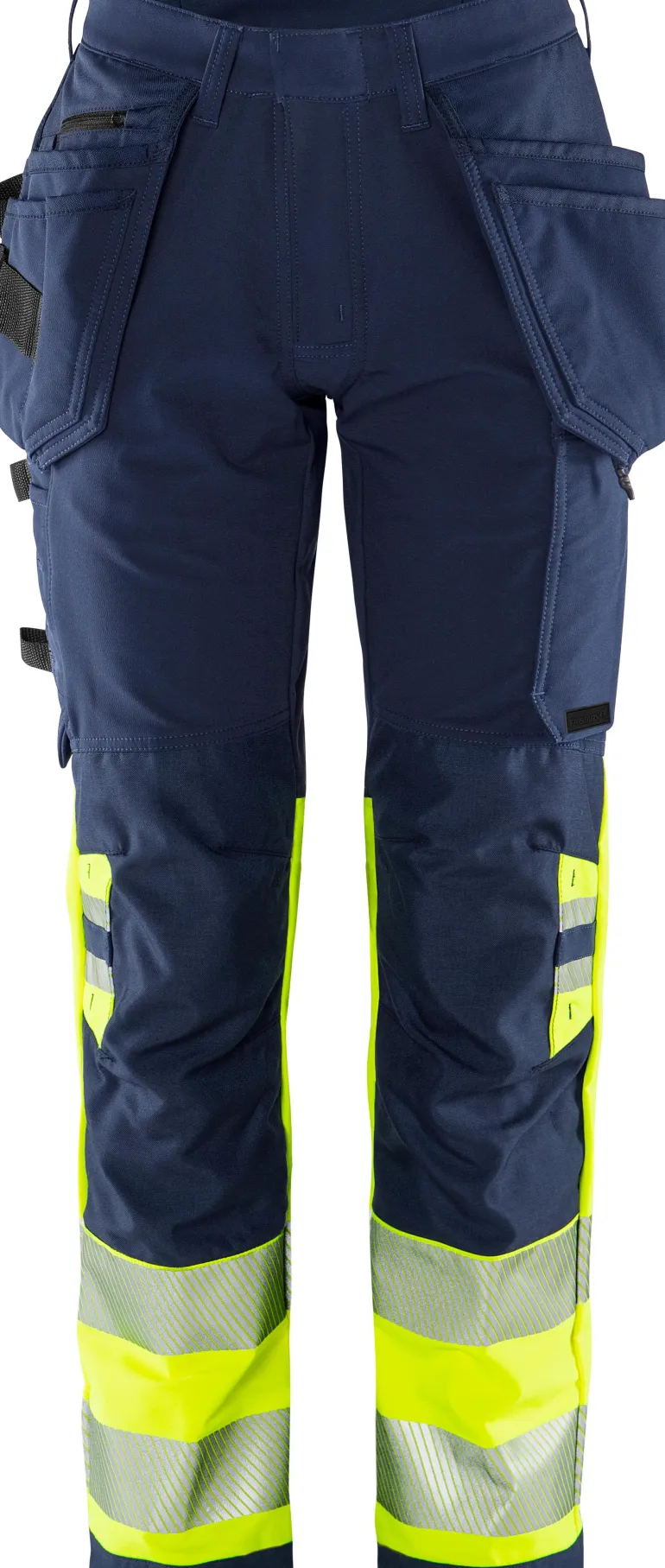 Vastuullisesti valmistetut rakentajan huomiohousut naisille. Materiaalina neljään suuntaan joustavaa stretch-kangasta. Valmistuksessa on hyödynnetty biopohjaista ja kierrätettyä materiaalia.