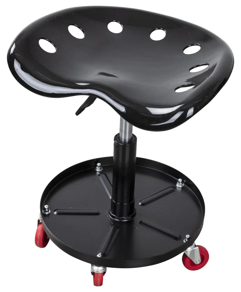 Mukava työjakkara (asentajan jakkara), joka on varustettu leveämmälllä istuimella, 5 kääntyvällä pyörällä ja laskutasolla. Korkeus on säädettävissä välillä 435-560 mm ja jakkaran painokapasiteetti on 120 kg.