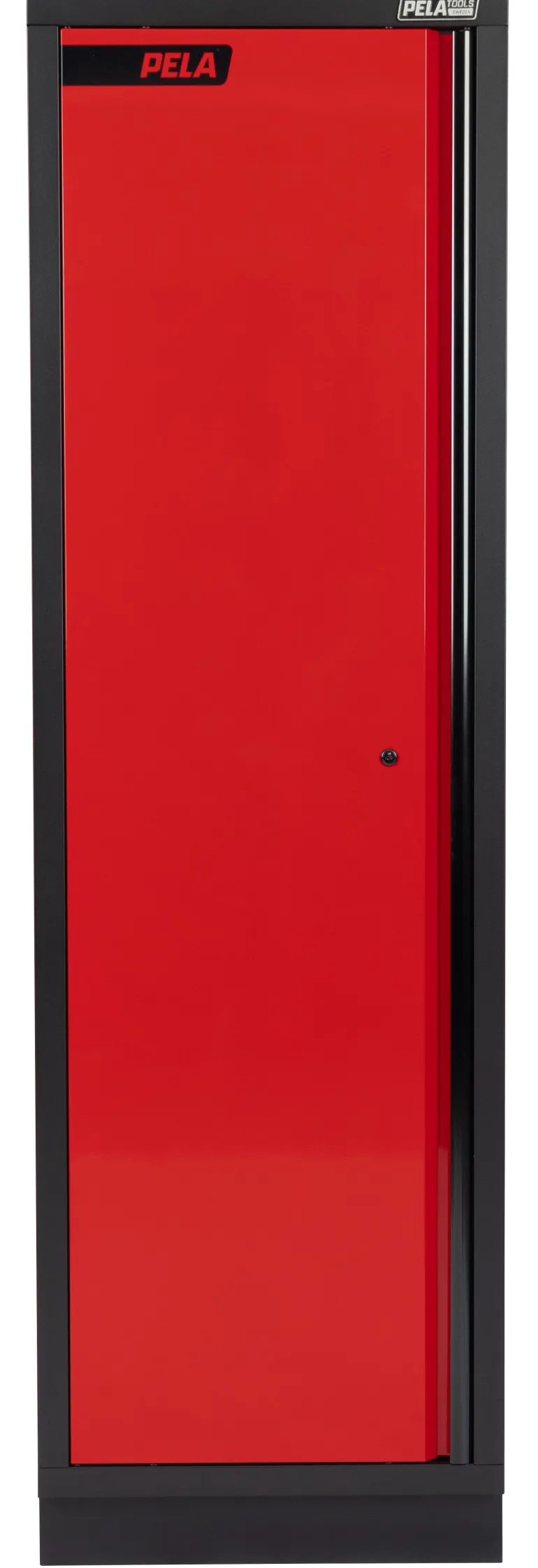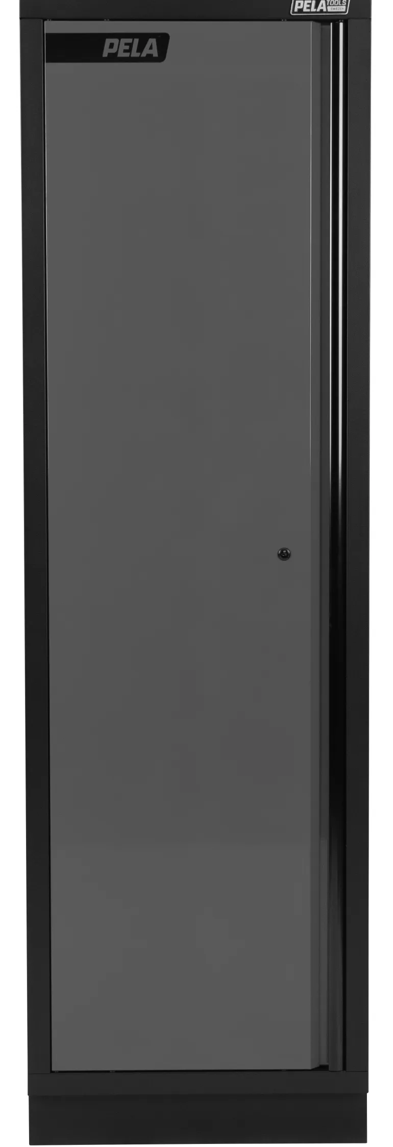 Työkalukaappi 600x458x2000 mm (harmaa/musta, lakattu), joka sopii yhteen PELA 2.0-työpistekalusteen kanssa (546213). Lattiakaappi joka sis. 4 hyllytasoa, joiden korkeus on säädettävissä.