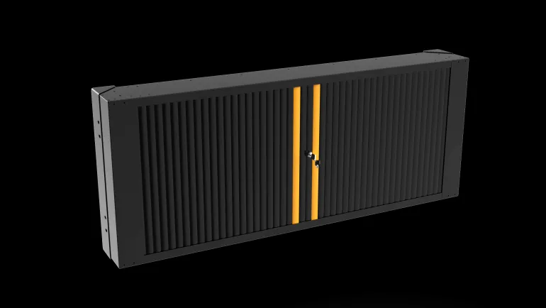 Työkalukaappi seinälle asennettavaksi tai suoraan Ironside -työpöydälle (202691). Liukuovilla (lukitus avaimella). Mukana 2 kpl harusta.